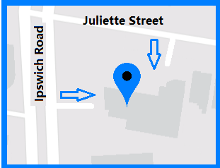 Easy Parking. Entrance on both Ipswich Road and Juliette Street.